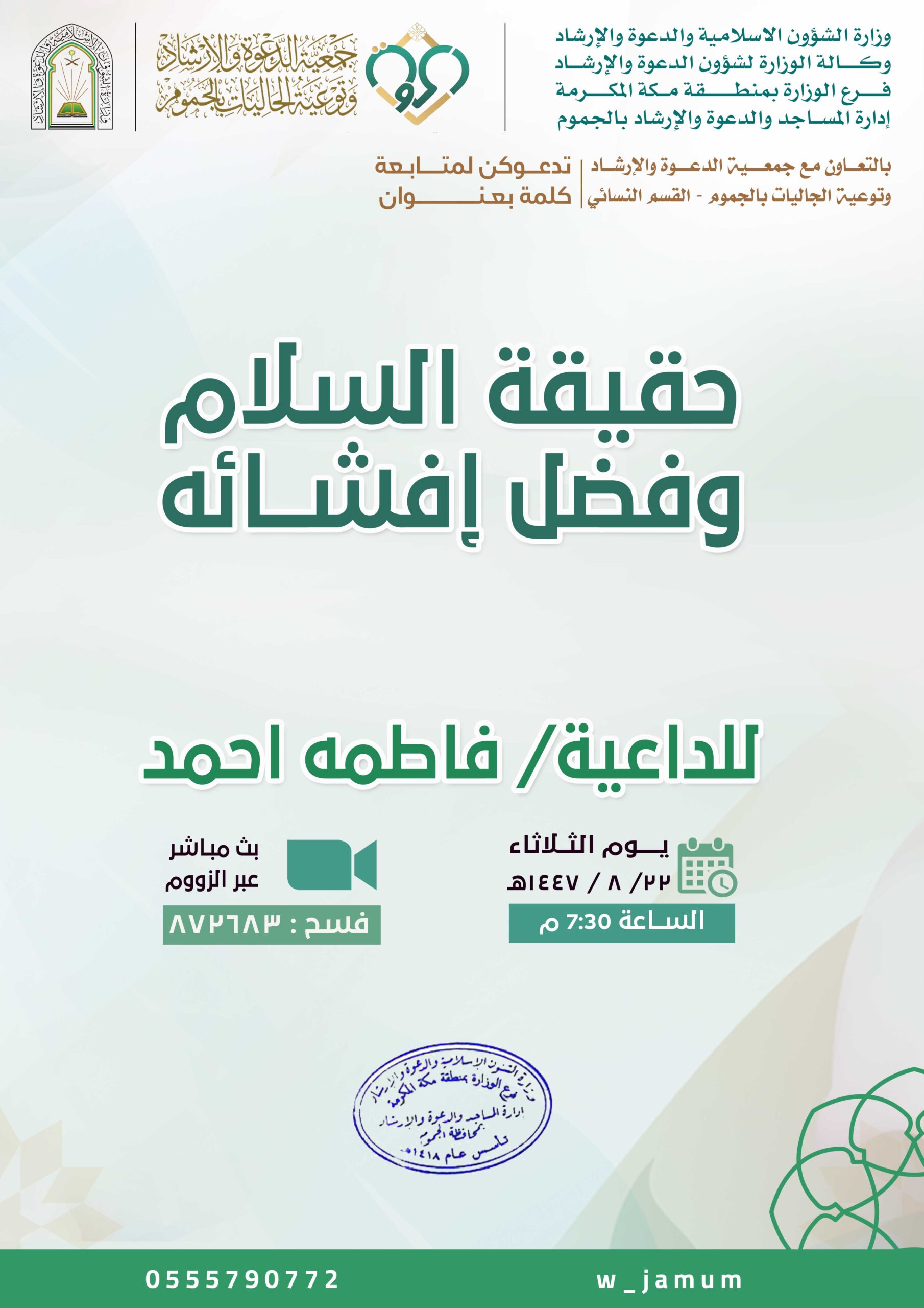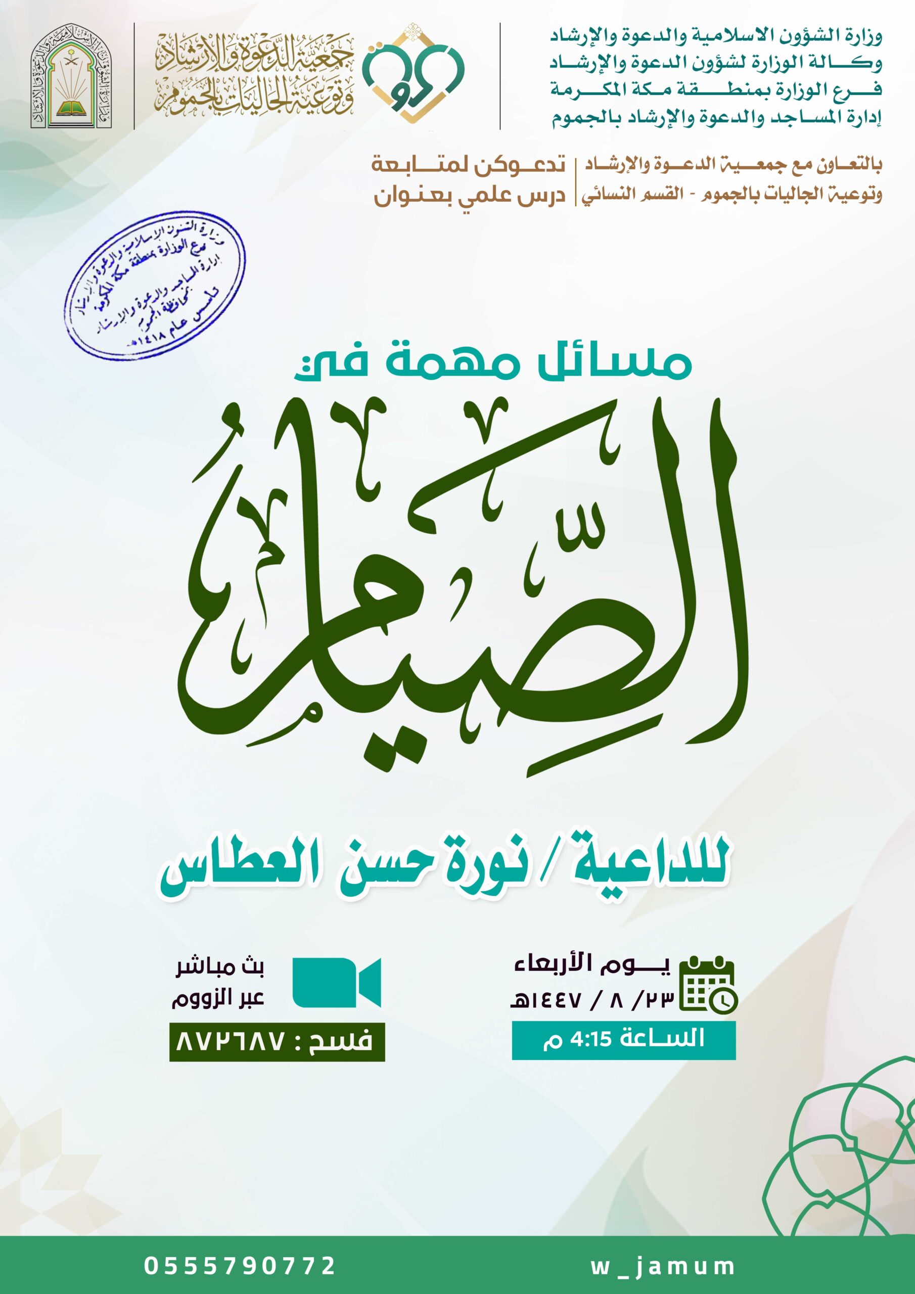 جمعية الدعوة والإرشاد وتوعية الجاليات بمحافظة الجموم، هي جمعية أهلية دعوية، تدعو إلى الإسلام وترشد إلى الحق ببرامج نوعية مؤثرة وأساليب تقنية متطورة ومتنوعة ، من خلال فريق عمل إبداعي في بيئة جاذبة.